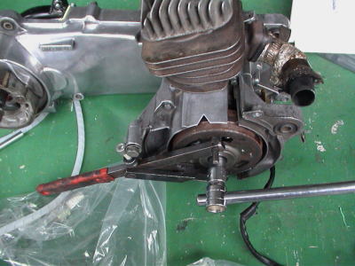 さて。まずは昨シーズン苦い経験となったフライホイールとクランク軸です。これについてはクランクを総交換することにしました。既にキー溝(フライホイル固定部分)が再起不能なほど破損してしまっていたため、仕方なしと判断しました。まだまだ交換したばかりだったのに・・・(泣