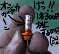 お次はフロントカウル用ビス! CDIがつけおわったら、フロントカウルを元に戻します。今回はこのフロントカウルの正面のM6ビス3本をもちっとキレイなものにしてみます。別に機能的にどうってのはないんですけどね。車体の中でイチバンよく見えるビスなんで、ちょいとカッコつけてみようってワケです。
