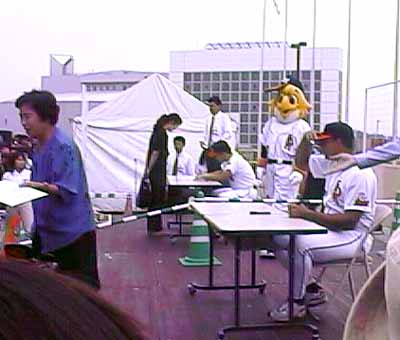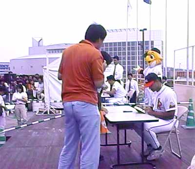 福岡ドームで 試合開始前に 選手のサイン会 手前はペドラザ 奥は井口 その2 |