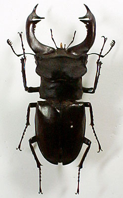 左はウクライナの個体。すごーーく古い個体であります。(つや消し。。油がなくなってる) 真中はスロヴァキアの個体。ちょっと細身ですね。 右側はドイツの個体で、他のヨーロッパ諸国のものよりもおおあごがやや長く、第一内歯と第二内歯とが離れているような感じで格好良い。また、ドイツでは普通種のくせにユーロミヤマは採集禁止種に指定されている。よって、今後の入手は困難であります。 |