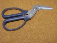 右写真のようにペットボトルを切断します。奥のボトルは、底から4〜5cmほどを切り取ります。底部分を蓋にします。手前のボトルは真ん中あたりの適当な位置で切断します。ボトル下部を飼育容器本体とします。![]() ペットボトルを切断するには、左写真のような専用のハサミがあると便利ですよ。 |