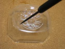 | さて、次は蓋の加工です。 先の尖ったドライバーなどで、ぷすぷすぷすぷすぷすぷすぷすぷすっと穴をあけます。 |