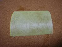 | とりいだしましたるは、100円ショップのラッピング用品コーナーで買った不織布です。いろんな色のものが売られています。右写真はピンクだけど、下の写真からは黄色い不織布を使ってます。 | ![]() |