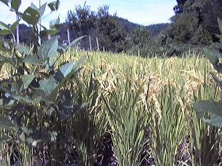 季節は、秋。稲も頭を垂れ、いよいよ実りの季節です。 8月末の大雨の被害が心配されましたが、なんとか例年並みの 収穫が期待されそうです。 |