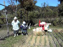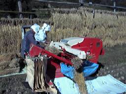 いよいよ脱穀です。収穫の最終段階に来ました。 約7ヶ月かけて育ててきた米がようやく形になります。 |