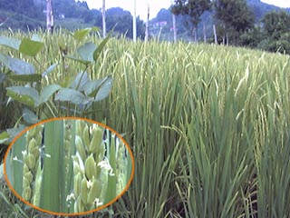 それでも、田んぼの稲達は精いっぱい穂を伸ばして、少しの晴れ間を見つけては盛んに花を咲かせています。