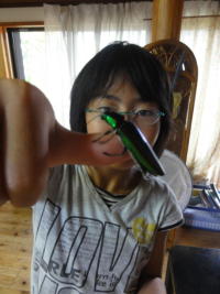 今日はお陸さんが庭で玉虫を捕獲。じっくりと観察した後に庭に再度放ちました。玉虫厨子って、この虫の羽を貼ったんだってねえ。