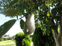 先週、お陸さんが庭の木の葉を観察中に発見した奇妙な生物。青虫に寄生しながら青虫を生かさず殺さずの状態で麻酔をかけたようにしてそこにウジ虫のごとく大量の幼虫を繁殖させている模様。いったいこのあとどうなるのか、お陸さんと共に見守っていきます。