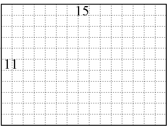 たて11、よこ15の長方形に9個の正方形を敷き詰めてください。 使用した正方形をすべて答えてください。 |