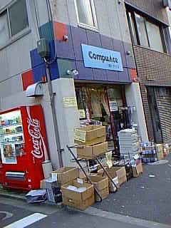 湘南通商、タンセイなどにはCD−Rは期待出来ない。そこで、「最近の秋葉は外から攻めろ」という格言(?)に従って、HOPPERからさらに進んで通りに出て外側を回ってみる事にした。交番の前にはなんと止めたバンの荷台に品物をならべた「店」があった。ここはのぞいたが、まあまあである。で、その先を見ると見慣れないジャンク屋があった。ゴミのようなものが積んである。CD−Rなんぞないだろうが、入ったことがないジャンク屋というのは、一度は入るものだ。すると、これがどうして、なかなかの店だ。ciのロジックボードだけ数百円なんぞと書いてある。J3100GT 動作中のもの千円というのもある。で、見たらなんとMACオープナーのトルク・ドライバーが980円ではないか。これ、近くのOIRさんに借りたままなんだ。返すためには買わなくては・・・と購入。