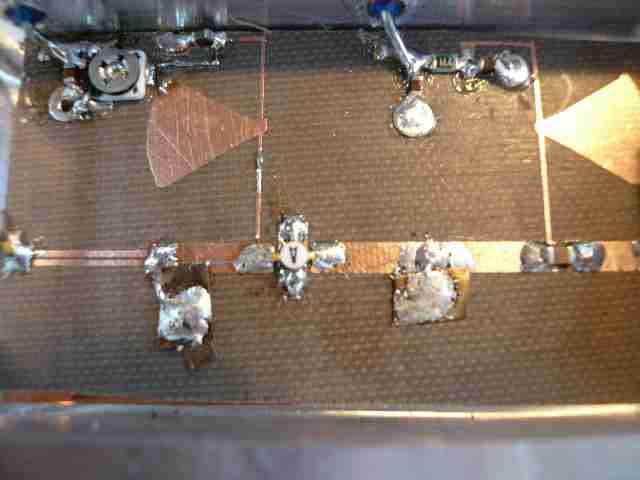 すると、こちらは入力部のカップリングに、この基板のエッジ・カップリングを使っている。また、ドレインにインダクタの代わりに小さなチップ抵抗が入れて