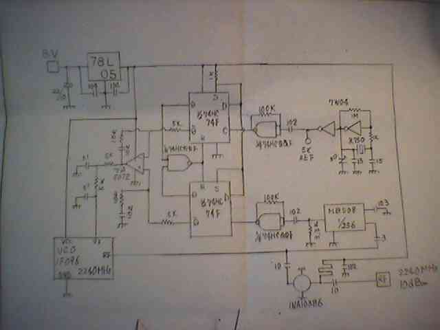 C/Nは裸の状態で35dB程度。もう少しケースをしっかりすればよくなるだろうか。VCOとICの電源が同じ三端子でとっているので、これを分離した方がよいかも知れない。手持ちの水晶で2242Mになったので、これだと移動用のDUAL-BANDにもよさそうだ。でもちゃんと箱にいれなくてはダメだなぁ。
