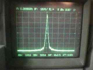 これをスペアナで見たのが、左右の写真だが、まあ、最後のフィルターがないもので、3G程度に-15dB程度のスプリアスが出る。そこそこC/Nもとれているようだ。