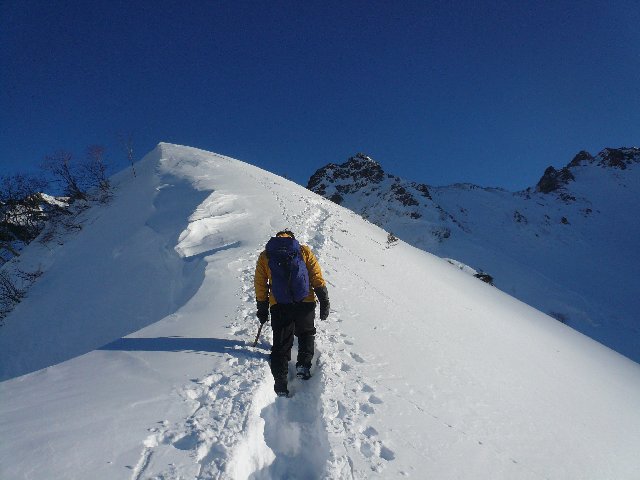 吹雪で敗退するのが雪山、登頂できたら幸運〜20数年、冬山はそんなものだと思ってきた。でも、やっぱりたまにはこんな晴天の山頂に立つのもいいなぁ。来年は、少し多人数でラッセルを楽しむような山に行ってみたいと思う。