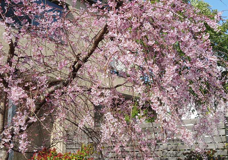 今日の画像は、ご近所の枝垂れ桜です。ほぼ満開です。画像では表現できていませんが、優雅な雰囲気です。町内の桜は、満開もあれば、咲き始めたばかりものあり、咲き方はバラバラです。近くの大きな公園のほとんどの桜の木々は、やっと咲き始めた段階なので、来週の週末が見頃でしょう。