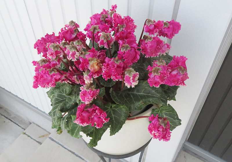 今日の画像は、我が家のシクラメンです。花が八重の変わり種のシクラメン、暖かくなっても元気で咲いています。