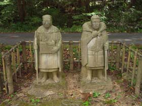 現在、須賀川市の人口は7万8千人ほど。東北で一番治安の悪い街と言われる郡山より電車でたった2駅ですが、「町の規模というのはこの程度がいいなぁ」とつくづく思わせる良い町で、私は何度もこの須賀川の町を訪ねています。芭蕉が須賀川の町に到着したのは4月22日、今の暦で6月9日のこと。ここ須賀川で7泊もします。芭蕉さんの移動のスピードは概して速いのですが、なぜか長逗留することも間々あるのです。最近、町のメインストリート(といっても広くない)の一角の小さな公園(軒の栗庭園)に高さ70cmほどの芭蕉さんと曽良さんの石像が建立されました。適度にデフォルメされた像は、何やら現代的に見え、かつ古風な石仏を見ているようでもあります。(09/10)
