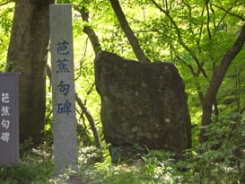 右の写真は境内にある、芭蕉句碑。以前来た時はカメラを忘れ「写るんです」で写したボケボケの写真しかなかったのですが、このたび14年ぶりに再訪し、やっとマトモな写真が撮れました。