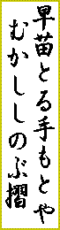 - (早乙女たちが苗代で)早苗を取っている手つきは、昔しのぶ文知摺を摺りそめた手つきをしのばれることであるよ。