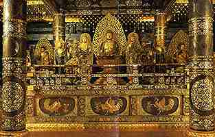 金色堂が建てられてから五十年ほどしてこの貴重な金の御堂の腐朽を防ぐため簡素な覆いが造られ、室町時代中期頃には旧覆堂(右写真)の姿が整えられたと思われるとのこと。