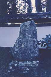境内の句碑(→)ですが、この写真では碑面が判然としません。目をよく凝らして見れば、中心のやや右寄り、太刀の文字がどうにかお判りいただけるでしょうか?