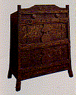 右の写真が「弁慶の笈」(参拝のしおりより)。「笈」とはリュックサックのように背負って使った箱形の収納器です。