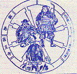 兄弟の死には後日談があります。妻二人が夫たちに成り代わって甲冑(かっちゅう)を身に着け、嘆き悲しむ兄弟の母親の心をなぐさめた、とのこと。左のスタンプがまさにそのシーン。