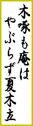 - (寺をつつき壊すといわれる)キツツキも、(この仏頂和尚の)庵はつつき破な(かったらし)い、夏木立の中に往時の姿をとどめていることである。