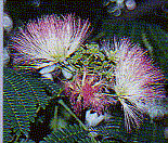 合歓(ねむ)は豆科の落葉樹。夕方になると葉が閉じ、朝になると再び開くのでこの名がある。7月ごろ、白または淡紅色の可憐な花をつける。