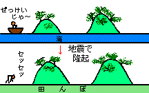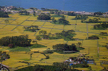 水田になっている部分がかつては海でした。海の方々に松の木の生い茂る小島がポコリポコリと浮かび、ちょうど太平洋側の「松島」を小型にしたような光景だったのです。