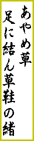 - 餞別に頂戴した紺の染緒の草鞋は、この端午の節句の菖蒲(しょうぶ)に縁がある。邪気を払う菖蒲を、旅人である私は足に結んで無事を祈ろう。
