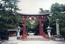 前日十四日の夜、芭蕉は気比(けひ)神宮へ夜参します。右写真、気比神宮の両部鳥居は日本三大鳥居のうちのひとつで高さは10.93m。正保二年(1645)の建造といわれますから、芭蕉もこの鳥居をくぐったかも知れませんね。