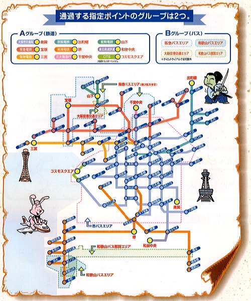 - スルッとKANSAIネットワークの鉄道、バスを利用すること。それ以外の交通機関を利用して所要時間を短縮したと考えられる場合は失格。