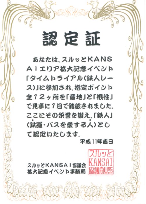仕事帰りに阪急梅田駅サービスセンターに赴き、鉄人レース踏破認定証とパスケースを受け取ってきました。
