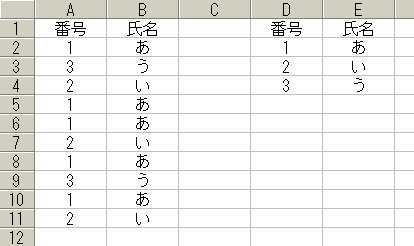 '出現値を重複なしで抽出転記