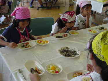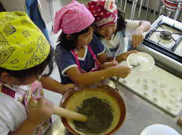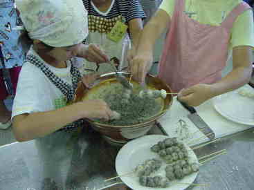 | 活動風景 説明を聞く 1、フルーツポンチ 2、だんご 3、会食 |