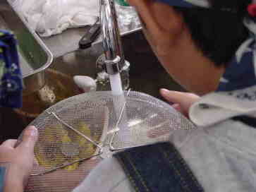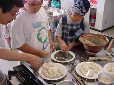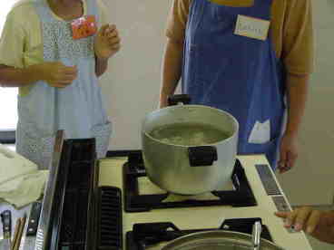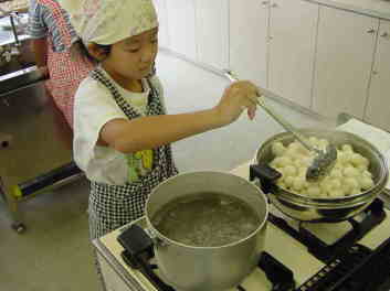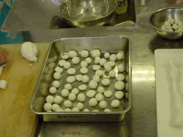 沸騰したお湯に入れ、浮き上がってきたら出来上がりです。 |