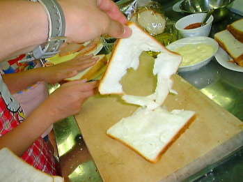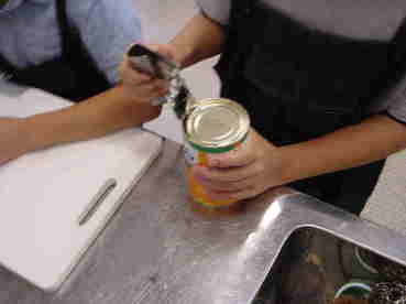 缶詰を開けます。缶切りを使うのが初めての子もけっこういました。 |