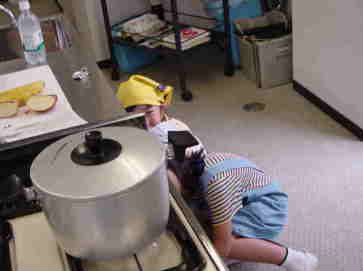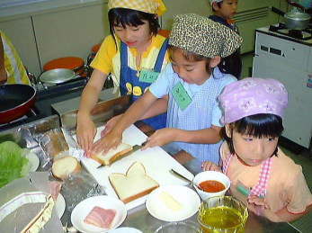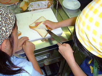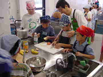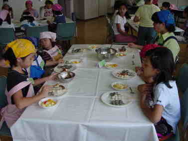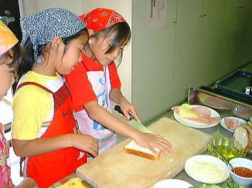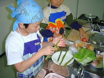 見ていて思ったことが、あまり家庭で料理をしていない子が多いことでした。包丁や缶切りを使ったことがないといった子が少なくありません。それでも、ちょっと使い方を教えただけで、「え、初めてなの?」と思うくらい、なかなか上手に缶を開けたり、皮をむいたりすることができるのです。 |