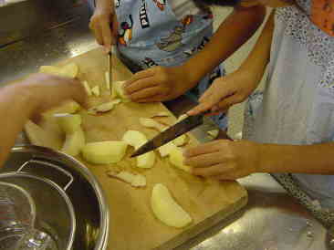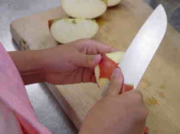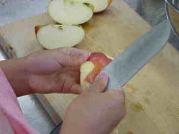 りんごの皮むきを包丁でするのが初めての子も、多かったです。 |