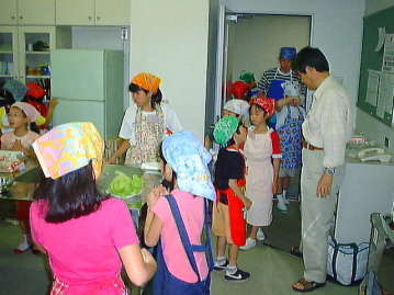 | 1、フルーツポンチを作る。 | 材料を取りに行きます。 |