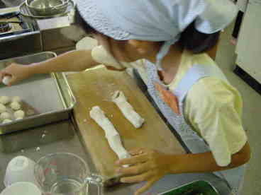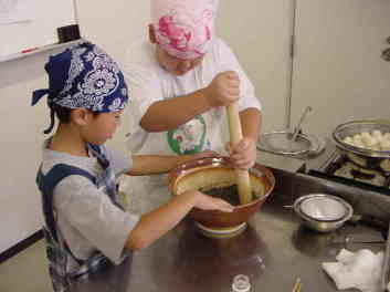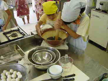 | 2、ダンゴづくり | 粉に水(お湯)を加えて練っていきます。 |