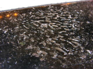新しいビルには,人造大理石や大理石の集成材を使っていることもありますが,人造大理石はダメ。集成材の場合,小さな大理石を寄せ集めてるものなら,小さな化石が見つかる可能性は,じゅうぶんにあります。