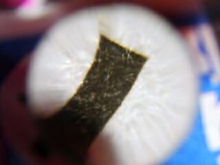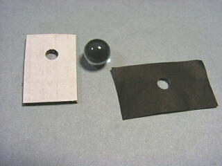 これにビーだまをのっけると,穴のむこうがわまで,ちょうど2mmぐらいになるので,観察したいものをダンボールにぴったりとくっつければ,ピントが合うわけ。黒いのは,ビーだまをおさえるための紙。