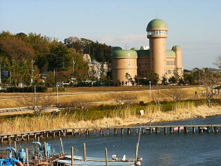 水の館のすぐ左,少し木に隠れている建物が,我孫子市鳥の博物館。
