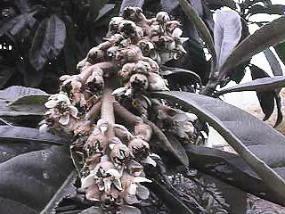ビワの花。冬に咲くんだね。