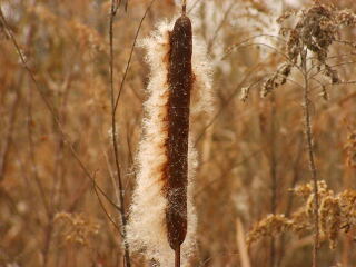ガマの穂。タネがぎゅっと詰まっていて,