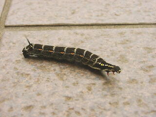 セスジスズメの幼虫が,すごいスピードで道を歩いていた。
