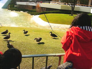 東京ディズニーランドに,カルガモがいっぱいいたよ! 手からポップコーンを食べるよ。 でも,暗くなると,どこかに飛んでいっちゃう。 (#一応,野生らしい……)