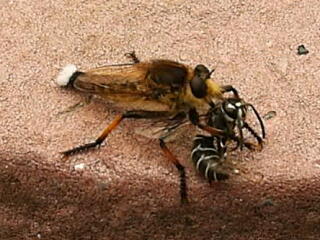 シオヤアブがクロスズメバチをゲット!